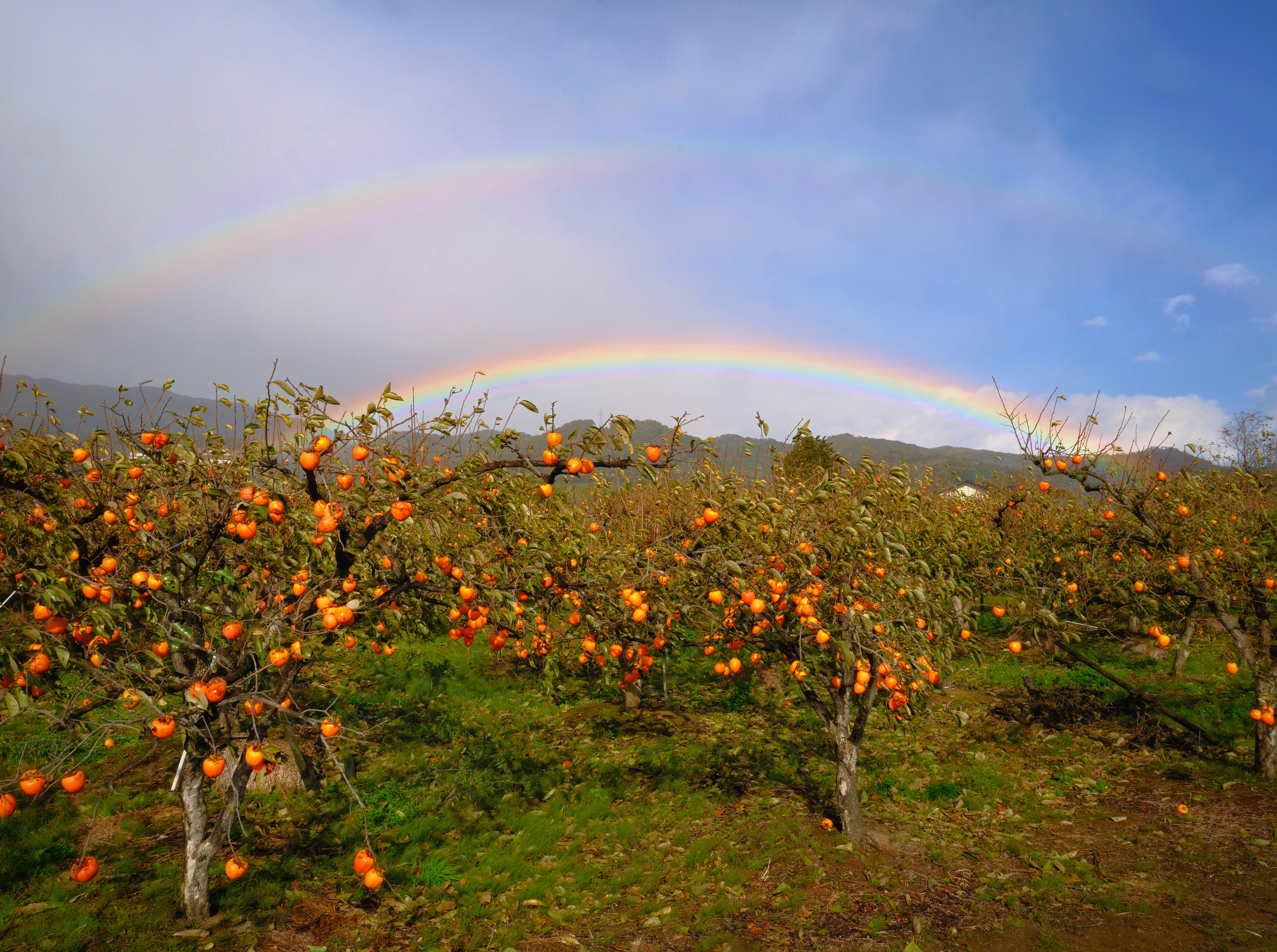 実りの空に虹ひらく |