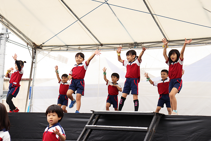 阿部副実行委員長や、引地町長のあいさつが行われ、くにみ幼稚園によるお遊戯で盛大に開祭しました。